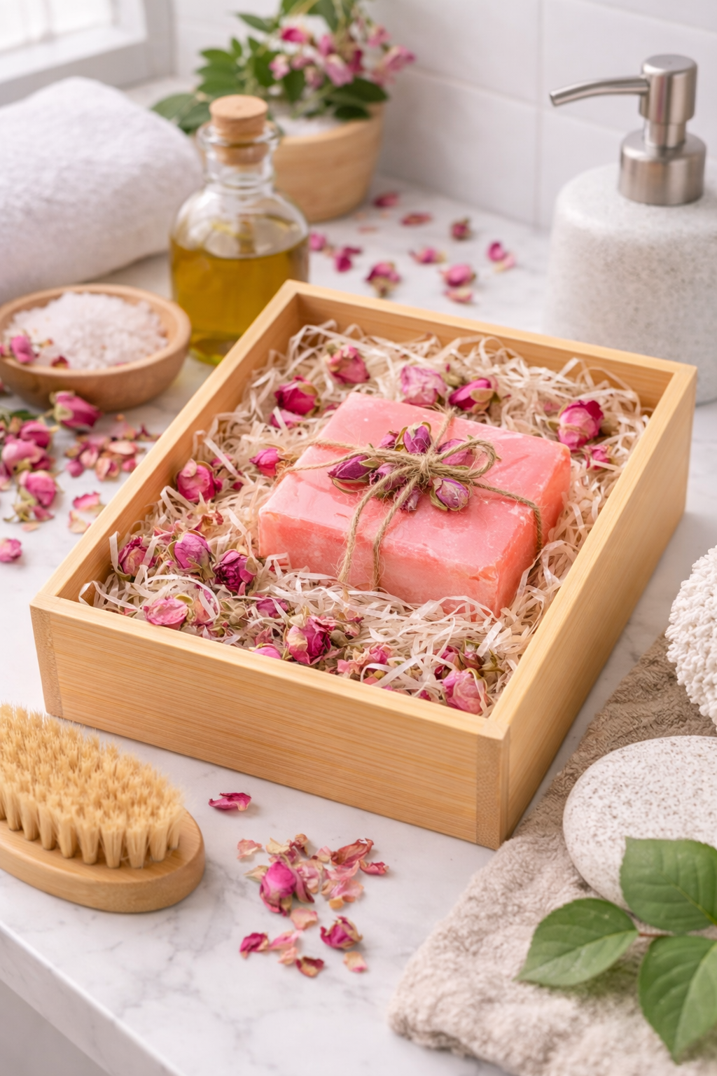 يساعد صابون الورد على تنظيف البشرة بلطف مع الحفاظ على توازنها الطبيعي، كما يساهم في تحسين مظهر البشرة وإعطائها نعومة ولمعانًا صحيًا. بفضل تركيبته اللطيفة، يمكن استخدامه للوجه والجسم، وهو مناسب لجميع أنواع البشرة، خاصة البشرة التي تحتاج إلى عناية إضافية وترطيب يومي.